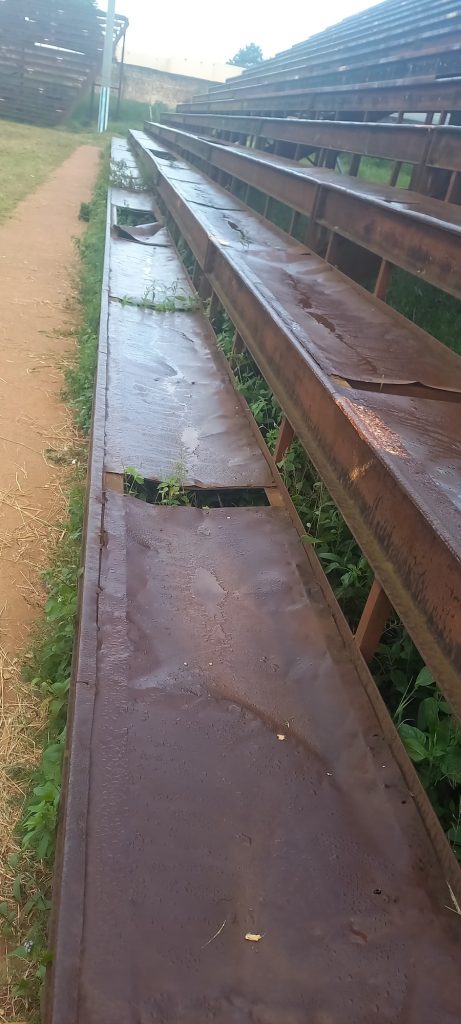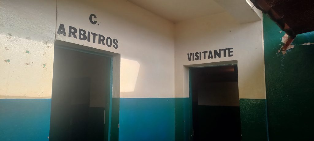 Desde balneários e bancos técnicos destruídos, bancadas em queda, casas de banho nauseabundas, capim a rodear os campos e portões de acesso que, se umas não abrem, então as outras estão a cair de podre.