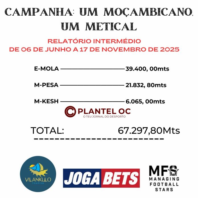 “Um Moçambicano, Um Metical” é uma campanha lançada a 06 de Junho último pela FMF e com o propósito de angariar apoio financeiro dos moçambicanos para a selecção nacional rumo ao CAN de Marrocos, prova a decorrer de 21 de Dezembro de 2025 a 18 de Janeiro de 2026. [PLANTEL OC]