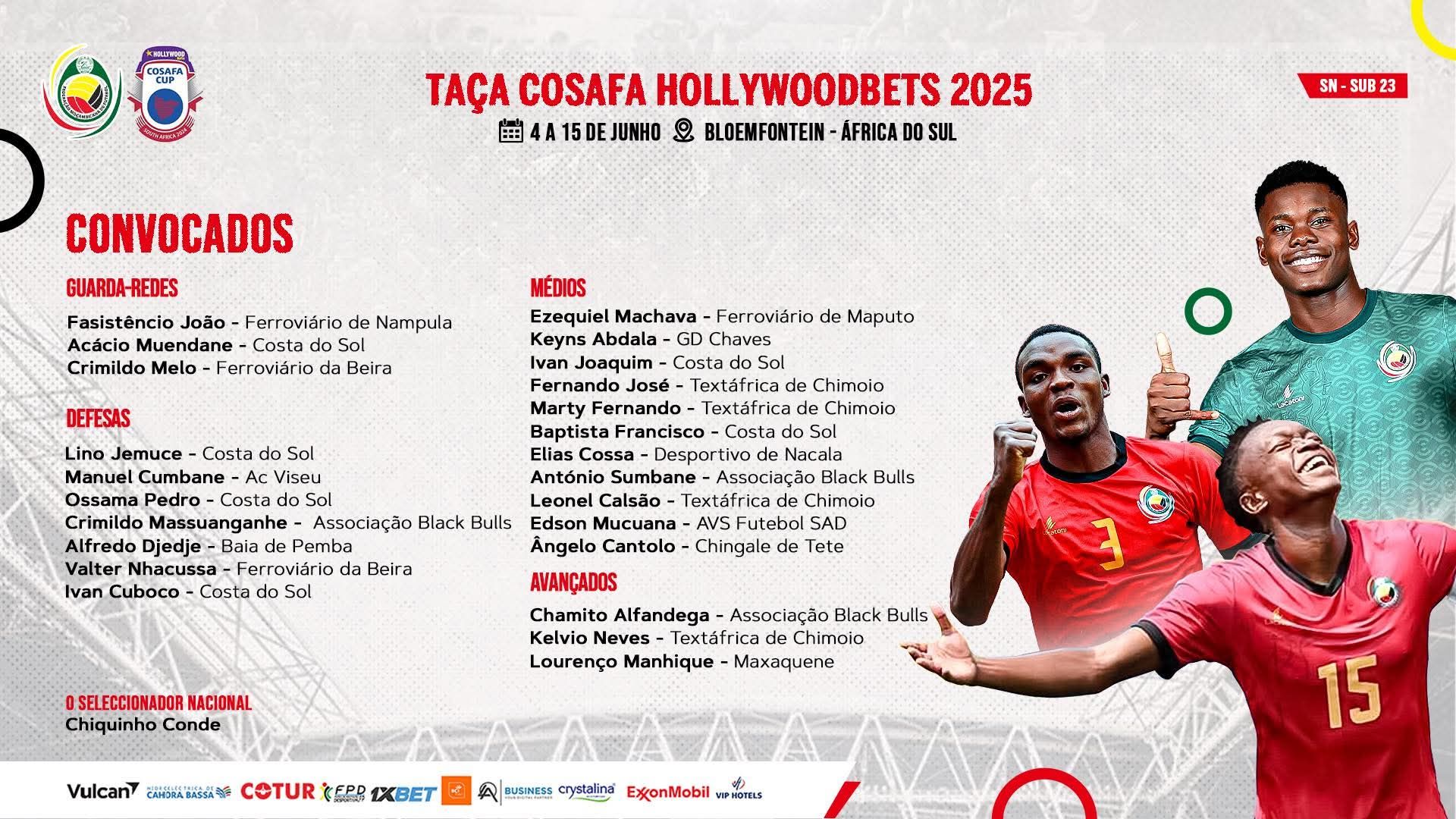 Conde divulgou a lista de 24 atletas convocados para o Torneio da COSAFA, prova a decorrer de 04 a 15 de Junho, na cidade sul-africana de Mangaung.